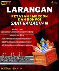 Banyuasin – Polres Banyuasin mengeluarkan sederet imbauan kepada masyarakat selama Ramadan 1445 Hijriah. Salah satunya larangan bermain petasan/mercon dan konvoi...