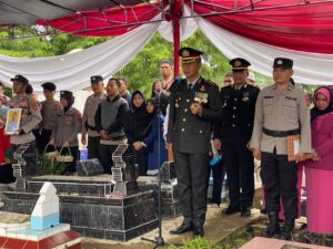 BANYUASIN - Kapolres Banyuasin AKBP Ferly Rosa Putra SIK, memimpin langsung Upacara Pemakaman Jenazah Almarhum Bripka Arie Satria di...