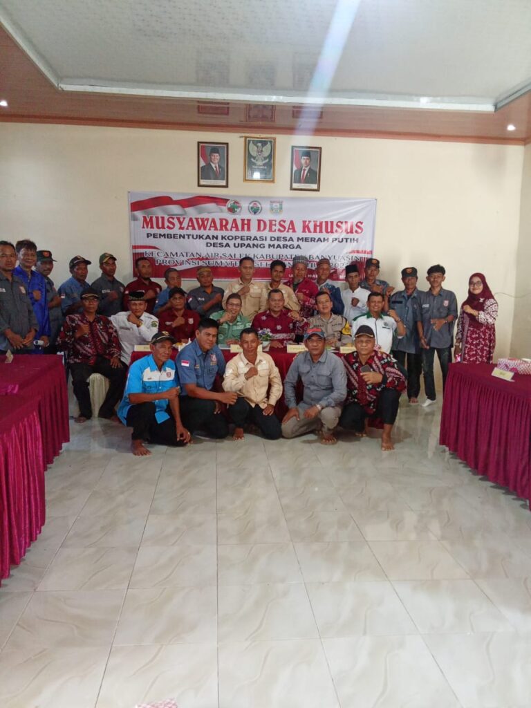 BANYUASIN, Lensainnews.com – Pemerintah Desa Upang Marga Kecamatan Air Salek Kabupaten Banyuasin menggelar Musyawarah Desa Khusus (Musdessus) dalam rangka pembentukan Koperasi Merah Putih, Kamis (15/5/2025), bertempat di kantor Desa Upang Marga. Kegiatan ini dipimpin langsung oleh Kepala Desa, Syaiful lizan, S, Ip, M Si.