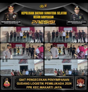 Polsek Makarti Jaya Monitoring penyimpanan dan pendistribusian logistik Pilkada di Air Salek Banyuasin
