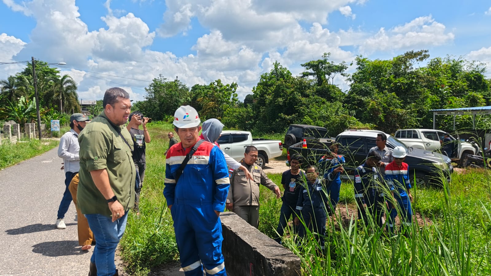 Lurah Gelumbang bersama perwakilan Pertamina dan Dinas PU Kabupaten Muara Enim melakukan peninjauan lokasi proyek pelebaran jalan pada hari Senin, 30/06/2025 untuk memastikan proyek berjalan sesuai rencana dan tidak ada masalah, terutama terkait pipa Pertamina yang berada di sekitar lokasi proyek.