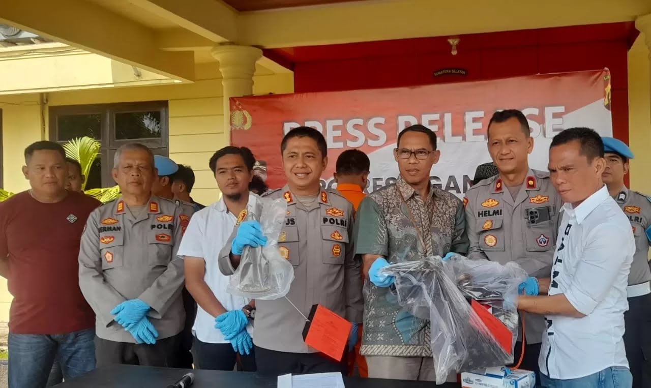 Kapolres Ogan Ilir, AKBP Bagus Surya Wibawa, mengungkapkan keberhasilan pengungkapan kasus ini saat menggelar konferensi pers di halaman Mapolres OI, Rabu 11 Juni 2025