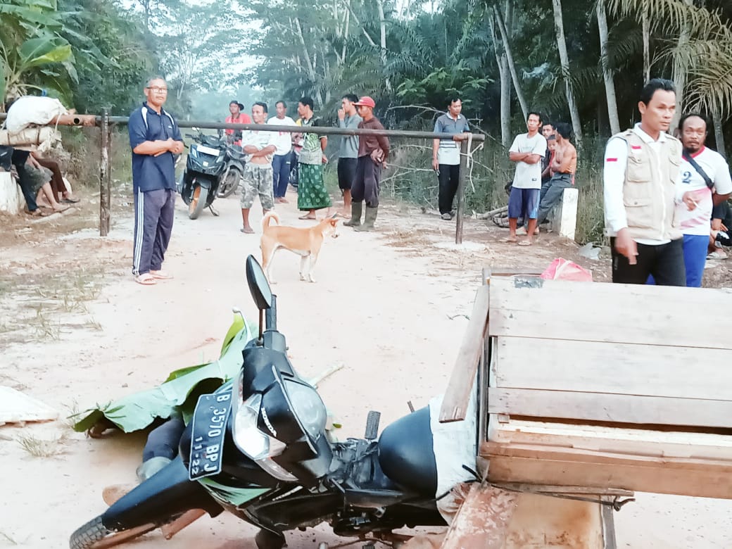 Banyuasin lesnainnews.com di duga tabrak portal pembatas seorang warga tewas di tempat.